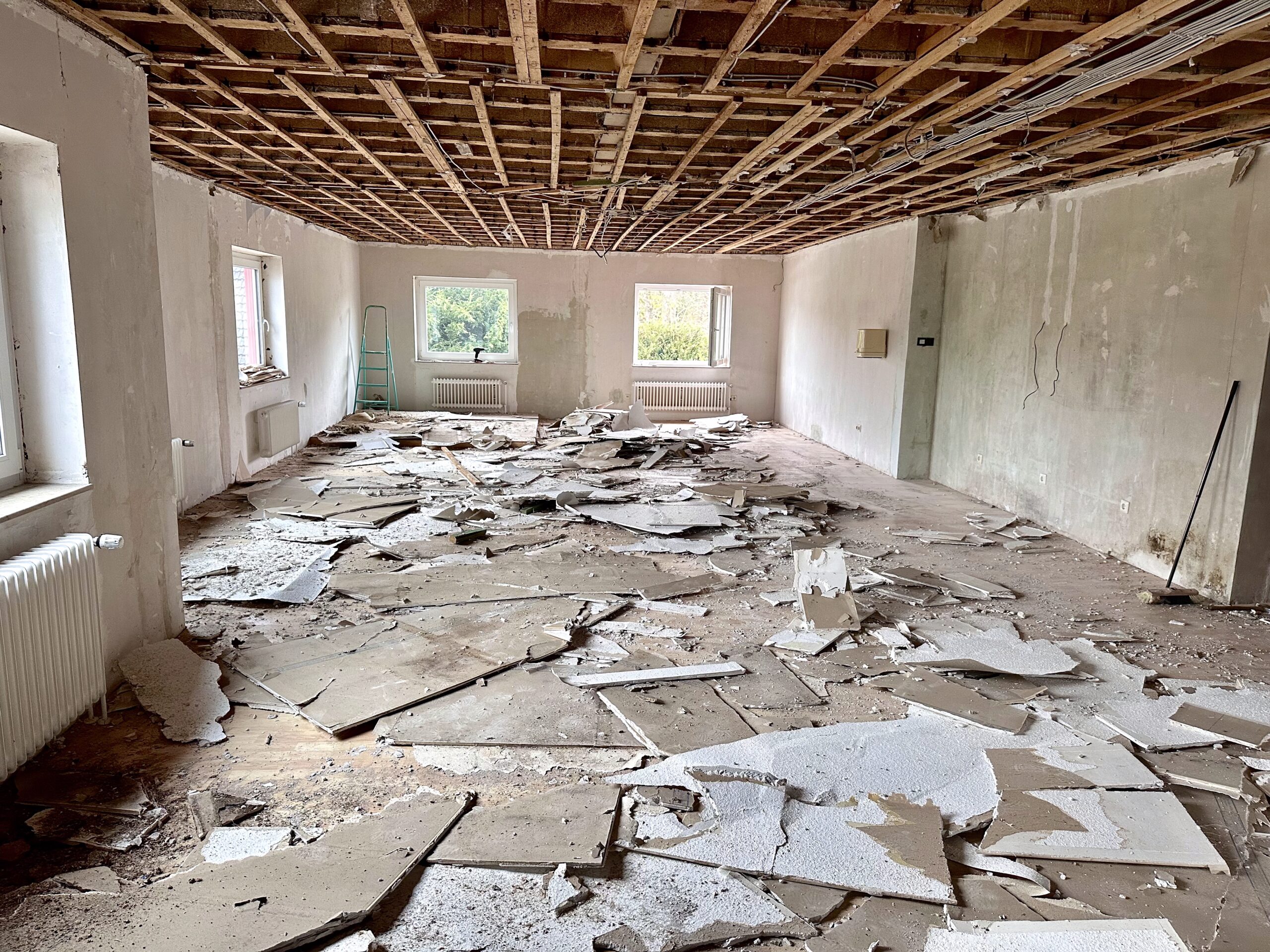 Der Verkäufer war direkt sehr angetan von der Idee, dass hier Büroräume für unser Vermessungsbüro entstehen sollen und hat uns das Gebäude verkauft. Die Tinte auf dem Notarvertrag war Ende November schon trocken, jedoch durften wir kurz zuvor am 14.11.2024 (Abrissbilder) schon beginnen.